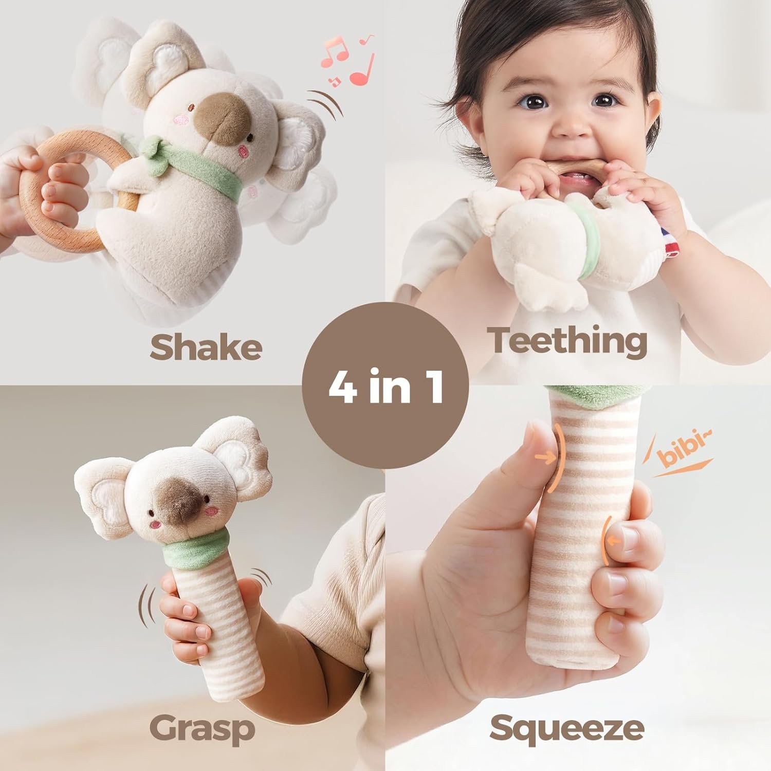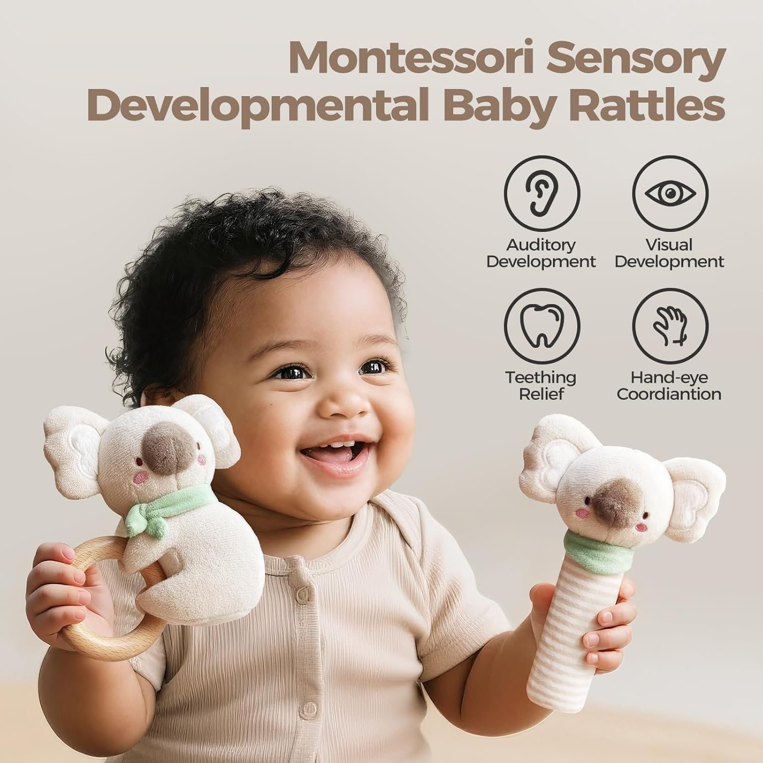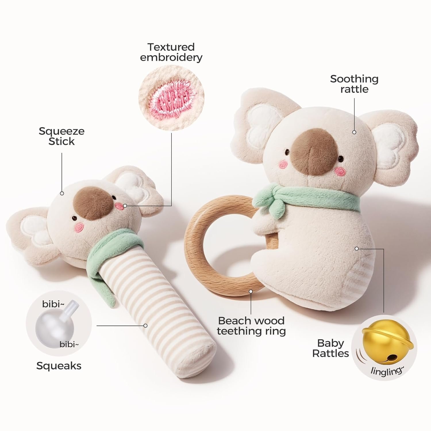 Custom plush rattles for baby brands, gift companies, and infant product collections.